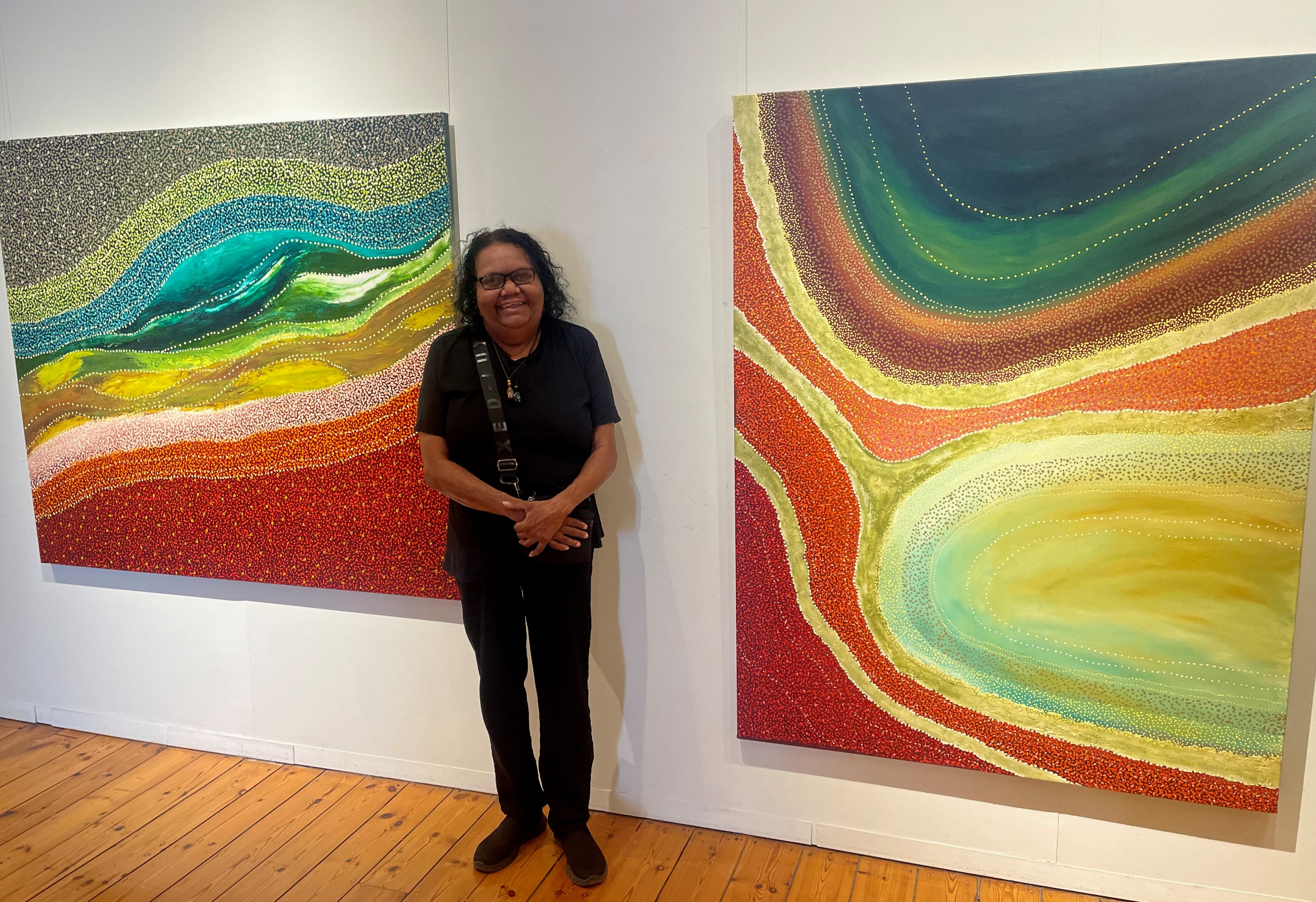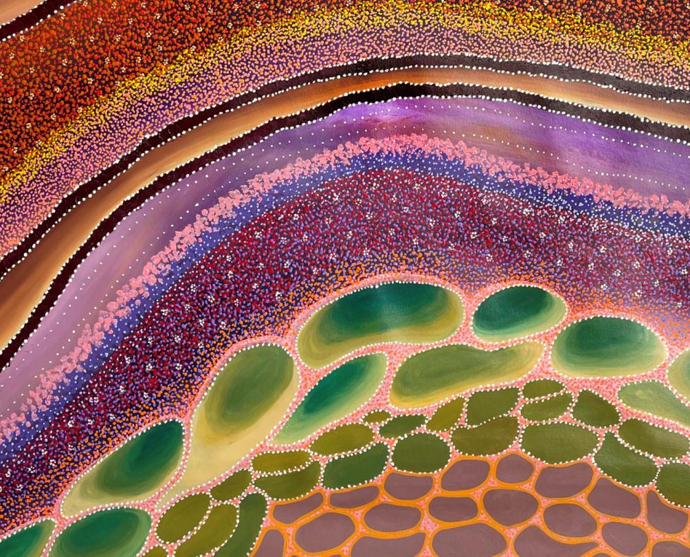 Sonya Edney presents new paintings made since her last solo exhibition at Japingka in 2024. This is Sonya’s seventh solo exhibition at the Gallery and much of the work focuses on Wildflower Country, the rebirth of life after strong rains flood the Gascoyne region. The qualities of renewal and regeneration inspire the artist as she brings us a wonderful new set of paintings to enjoy.