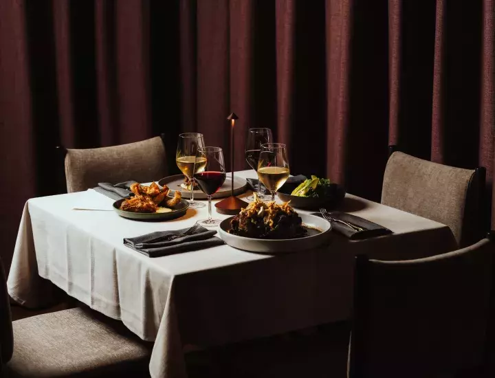 Dine in the 80's inspired restaurant or enjoy the fresh sea air at alfresco tables on the deck overlooking the harbour and iconic fishing boats.