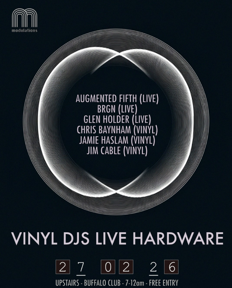 An evening of live hardware electronic music and vinyl DJs. Expect underground techno and electronic music by local musicians and DJs.