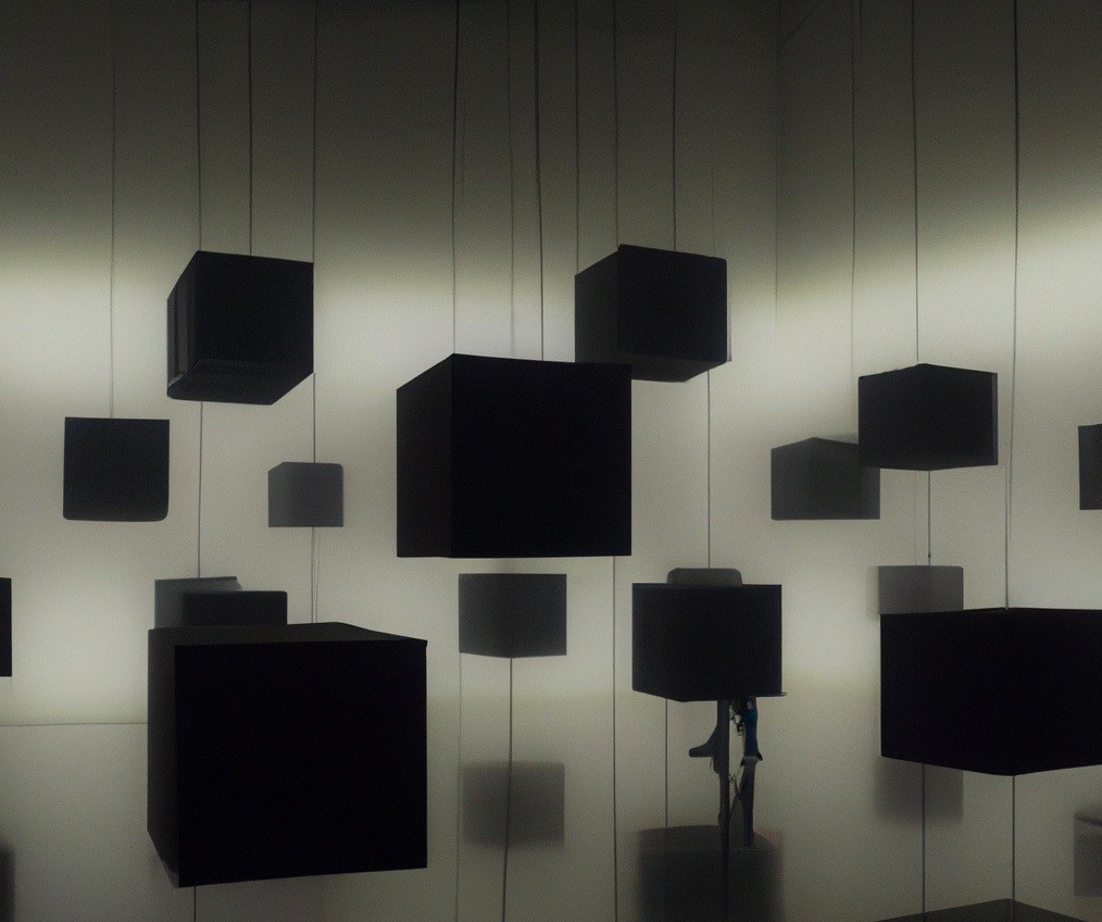 A polyphonic signal fractures and scatters throughout the space — dispersed across a suspended field of loudspeakers. Cello-like tones rise and recoil in response to an inaudible threat, echoing the murmuration of prey animals under pressure. The room becomes an evolving environment, a volatile ecology of pitch, pressure, and mass. Sometimes, it breathes. Sometimes, it drops into an uncanny silence.