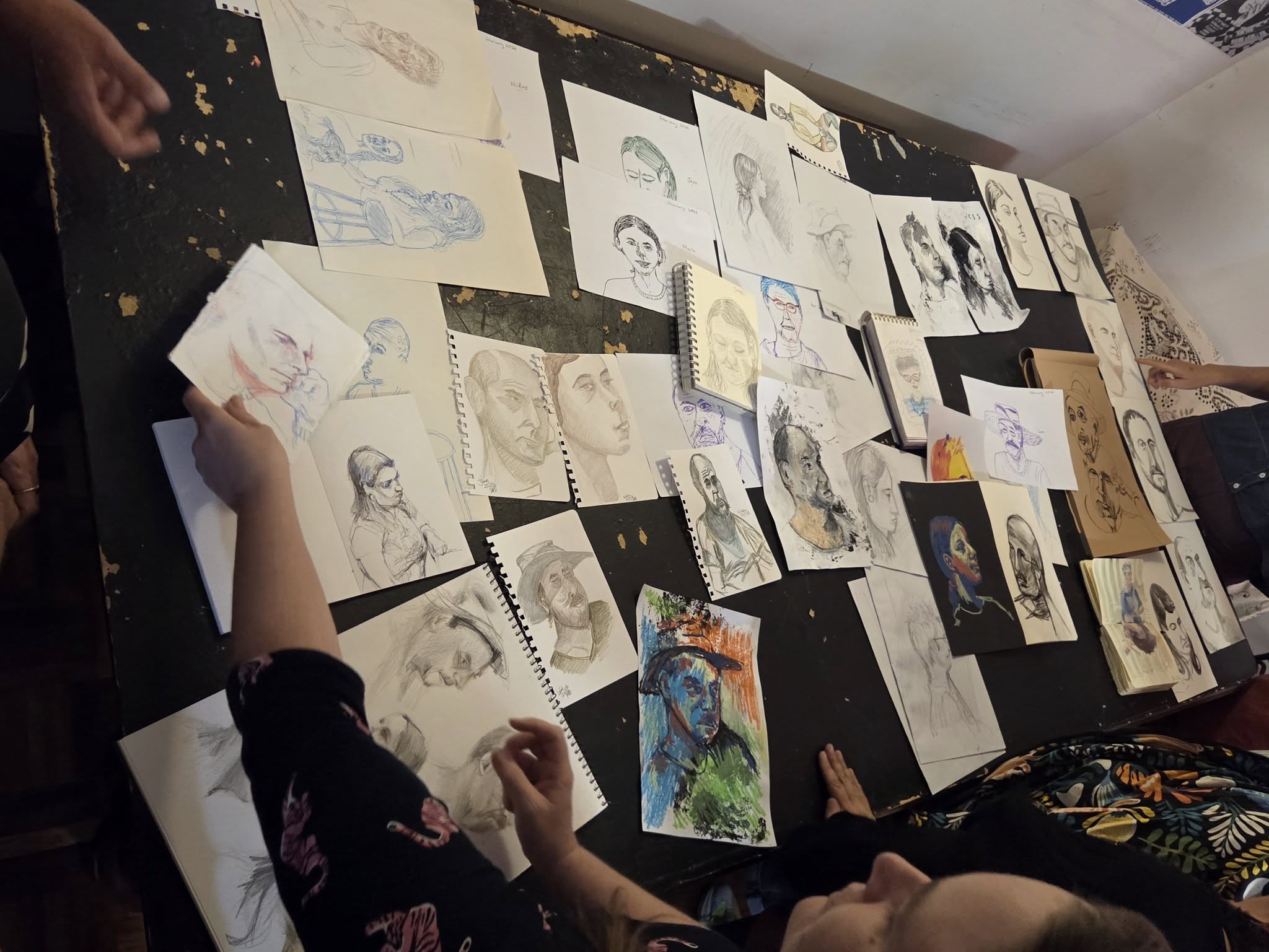 Bring in some drawing materials, sit, relax, and have fun drawing each other's portraits in your favourite little bar.