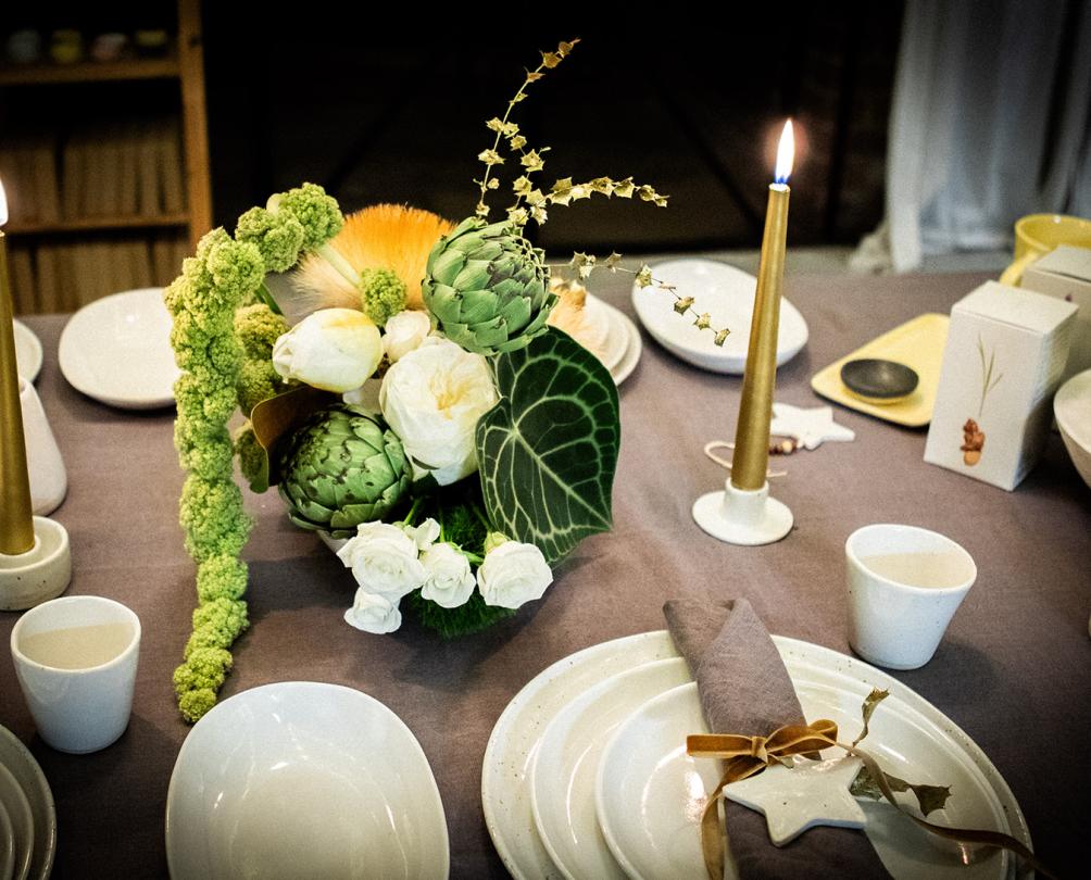 You will take home a handmade ceramic vessel by Winterwares, the kenzan and the floral arrangement you’ve created to host a beautiful Christmas event at your own table.
