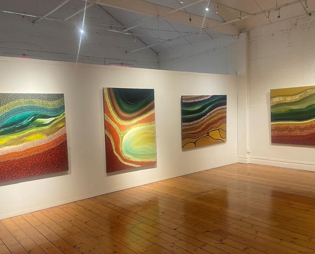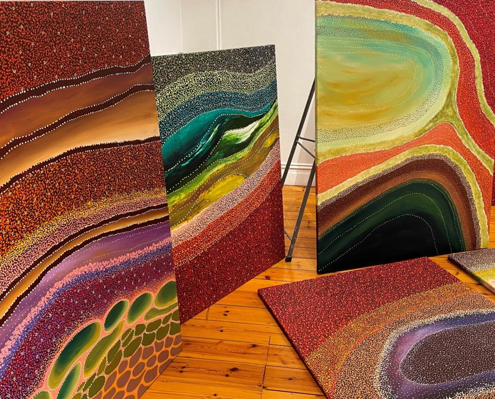 Sonya Edney presents new paintings made since her last solo exhibition at Japingka in 2024. This is Sonya’s seventh solo exhibition at the Gallery and much of the work focuses on Wildflower Country, the rebirth of life after strong rains flood the Gascoyne region. The qualities of renewal and regeneration inspire the artist as she brings us a wonderful new set of paintings to enjoy.