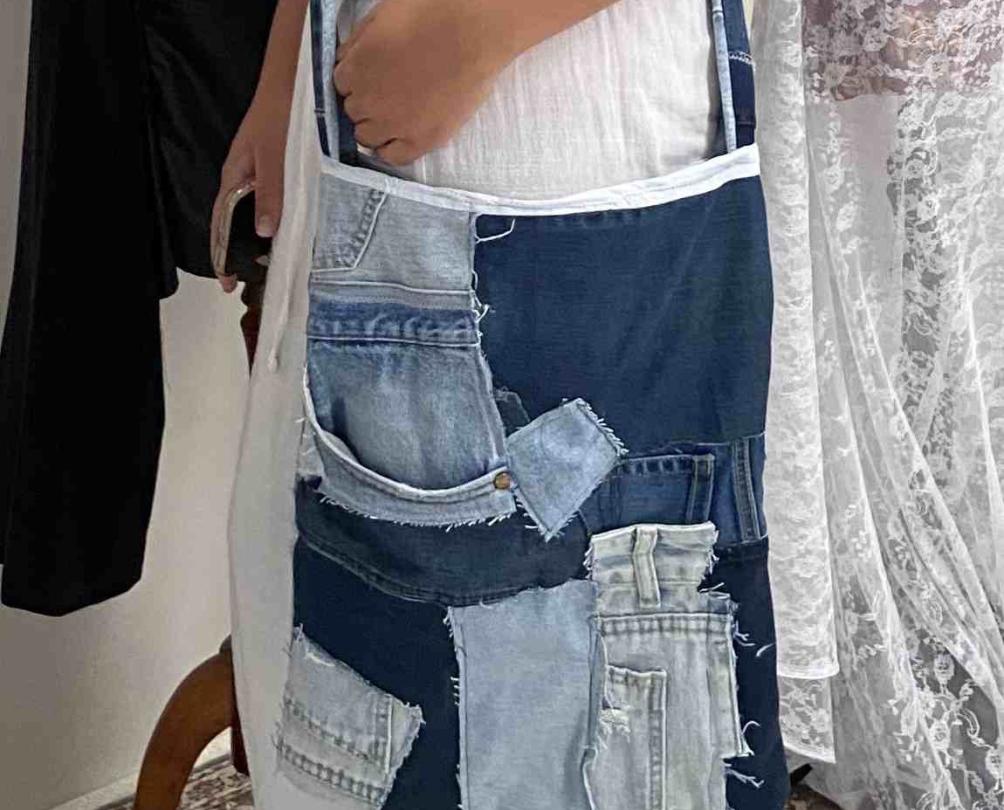 Explore various techniques for transforming old denim items into fashionable and practical bags.